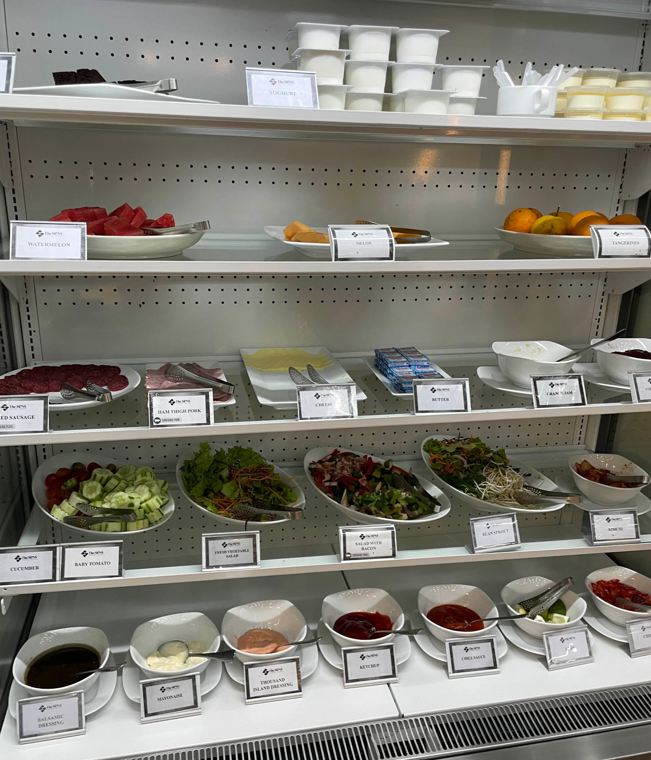요거트, 샐러드, 치즈, 과일 코너도 있습니다.